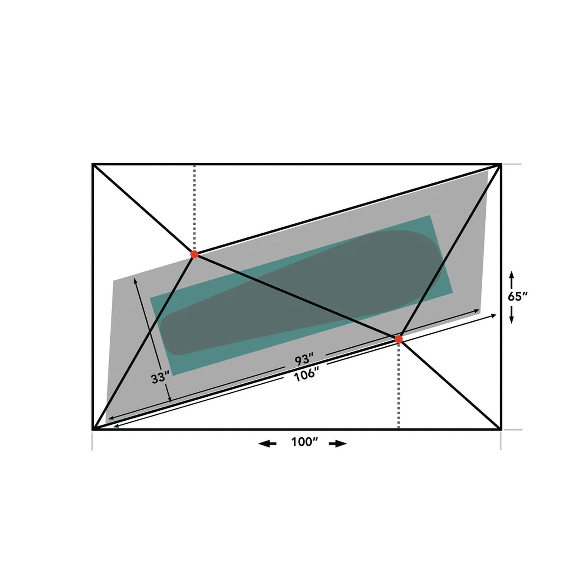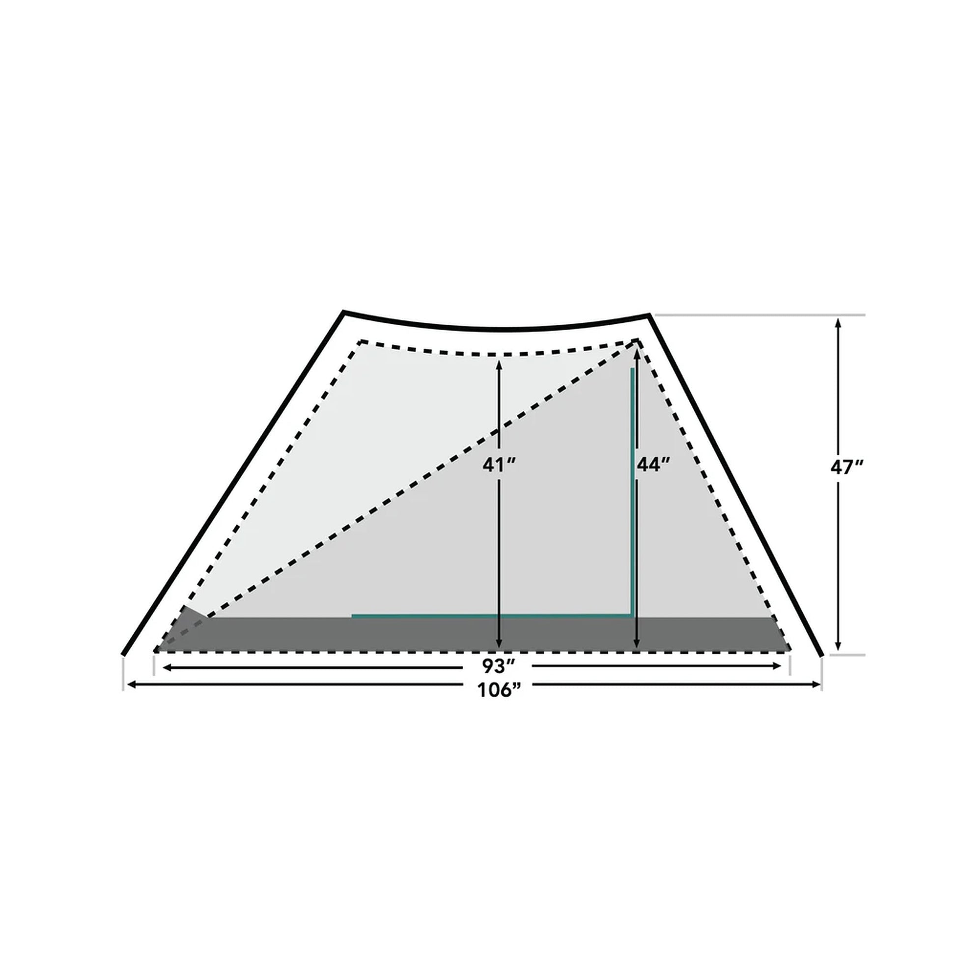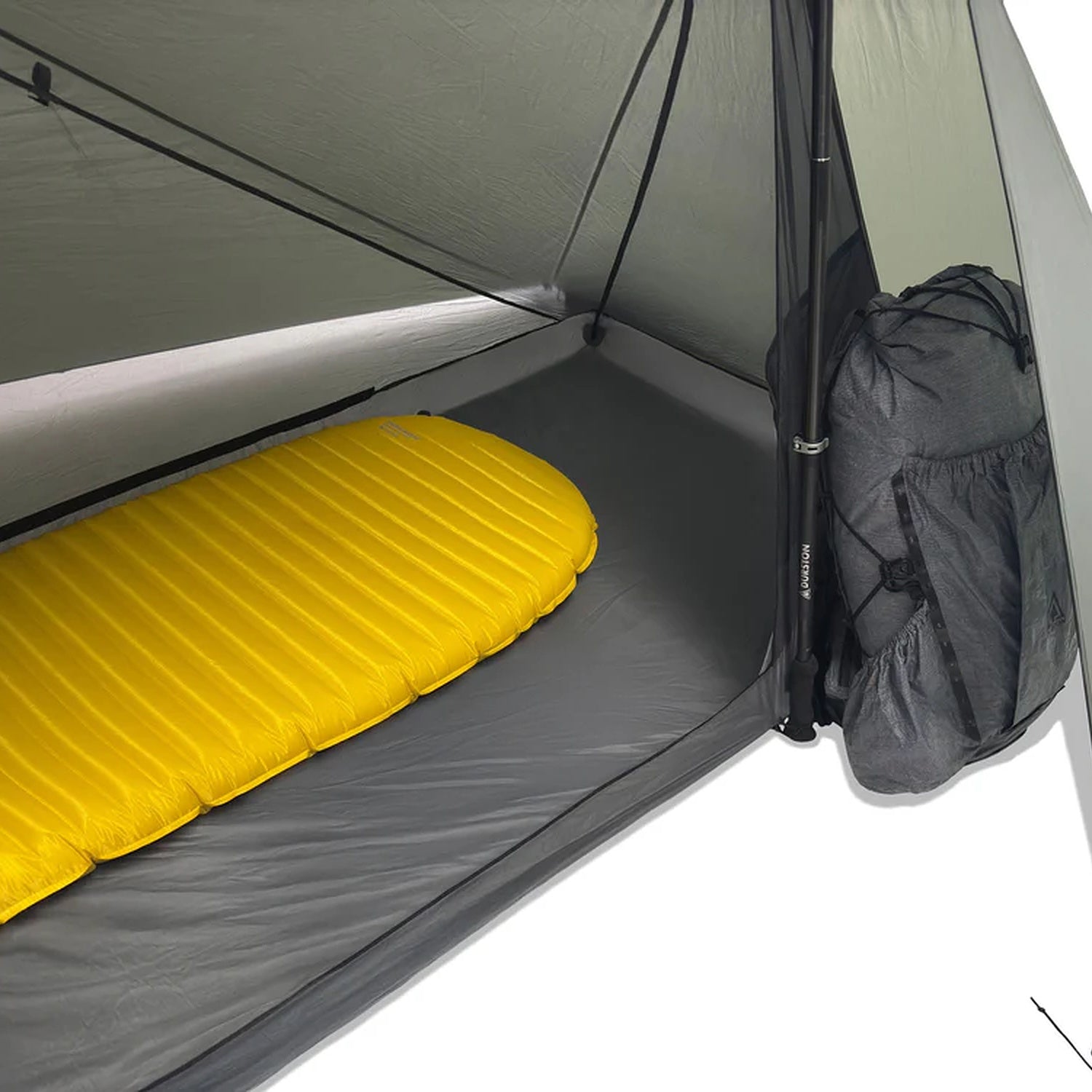 従来の常識を覆す「X‑Midジオメトリ」は、トレッキングポール2本を斜めに配置し、長方形ベースのシンプルな設営形状と広大な内部空間を両立する革新的な構造です