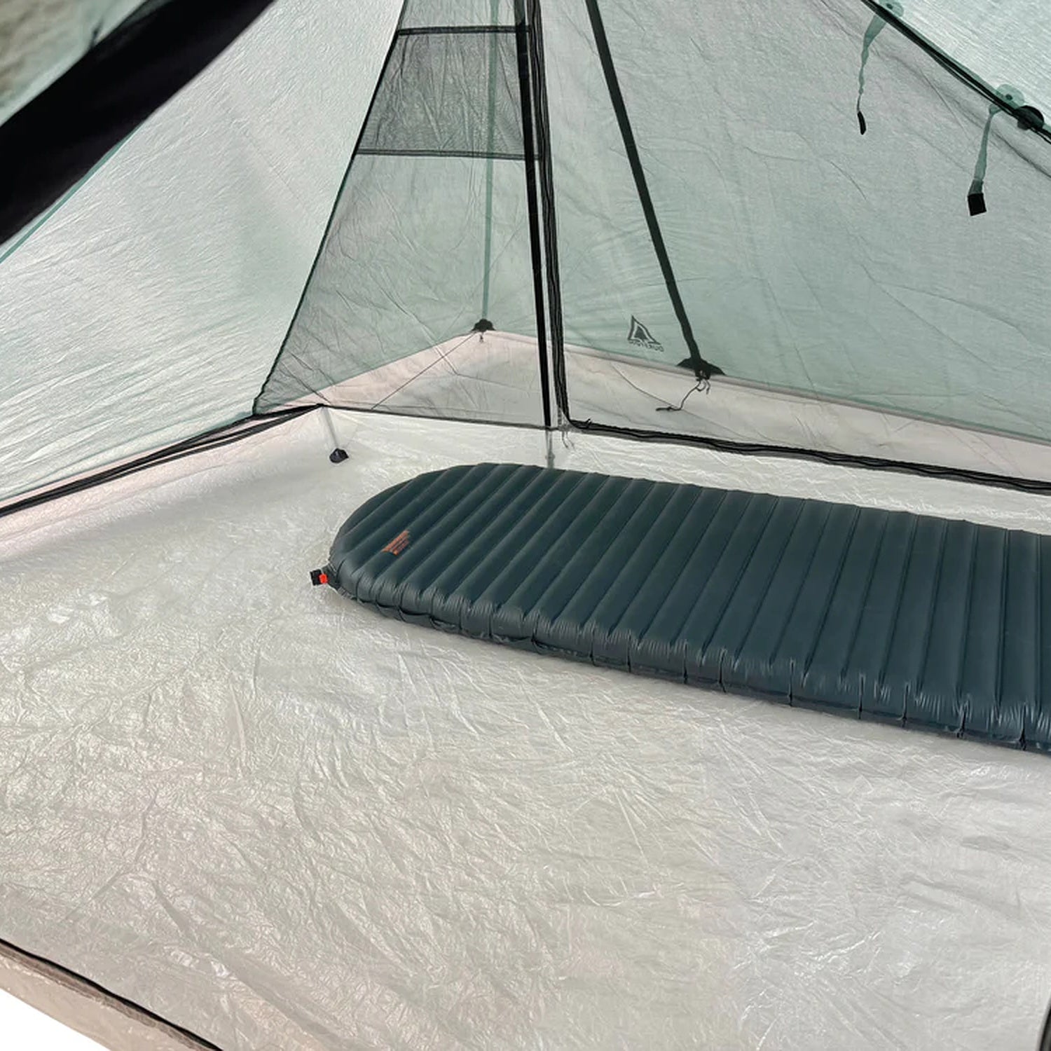 これにより、広幅スリーピングパッドの併用や、荷物を中に入れても余裕のある空間が確保され、ULテントにありがちな閉塞感から解放されます